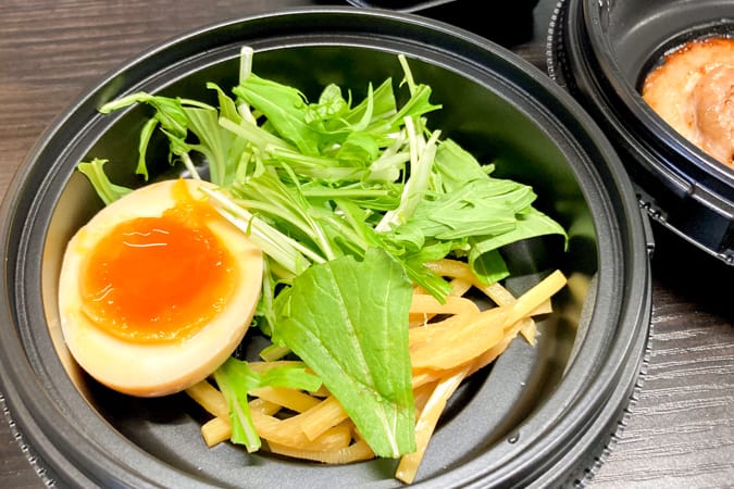 持ち帰ってすぐに食べられるのは、つけ麺とサイドのごはんメニューのみ。
