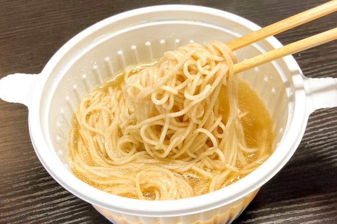 麺は細麺なのですが、温めすぎたのか少しやわらかめな印象がありました…!お店で食べる時はもうすこしコシがあるので、レンジアップでは様子を見つつ、温めすぎないのがいいかもしれません。