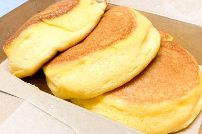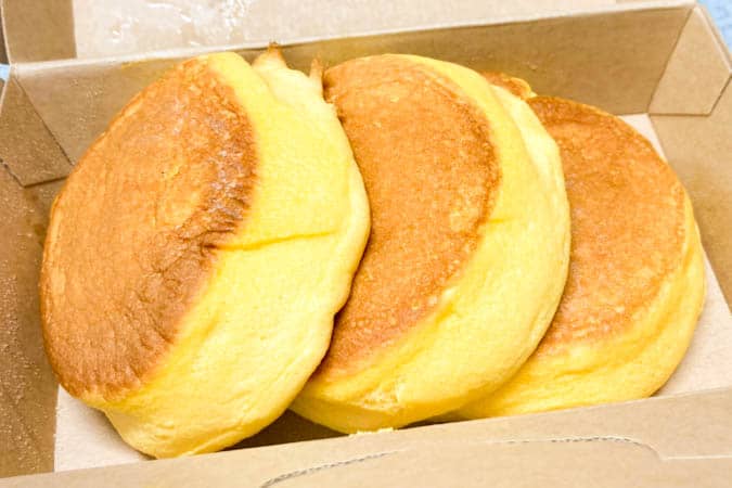 パンケーキのボックスはほんのりあったかく、開けるとふんわりと卵のいい香りが…♡