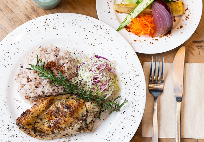 こちらはライスプレートメニューの「国産鶏ムネ肉のハーブグリルプレート(サラダ付き) 900円(税込)」。