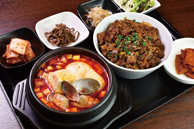 「スンドゥブチゲとミニプルコギ丼セット(キムチ・ナムル・おでんポックム・サラダ付き) 1,400円(税込)」など、人気料理がタッグを組んだランチのセットメニューもおススメです。