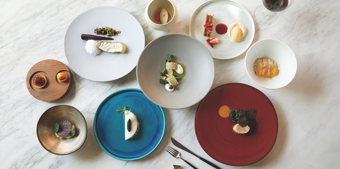 写真の「INTERSECT COURSE 8,000円(税込)」は、旬の食材を使ったお任せ料理を9品楽しめるディナーコース。