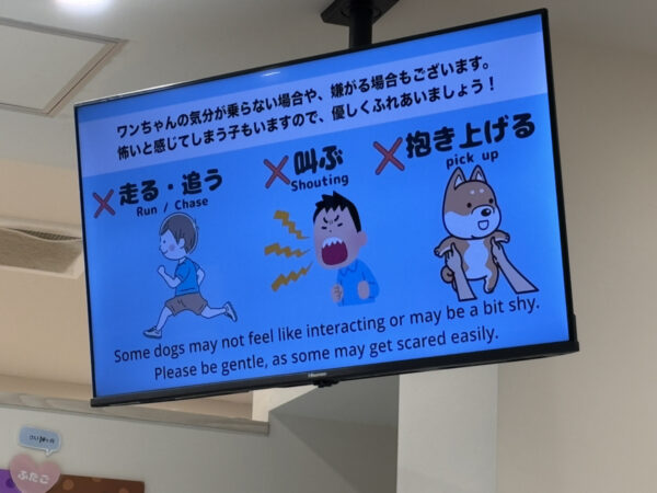 店名に「カフェ」とありますが、飲食はできません。わんちゃんとの触れ合いに特化したスペースです。