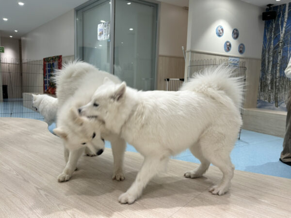 上板橋店のサモエドたちは、平均年齢2歳前後とのこと。人間でいうとまさに育ち盛りの遊び盛り!