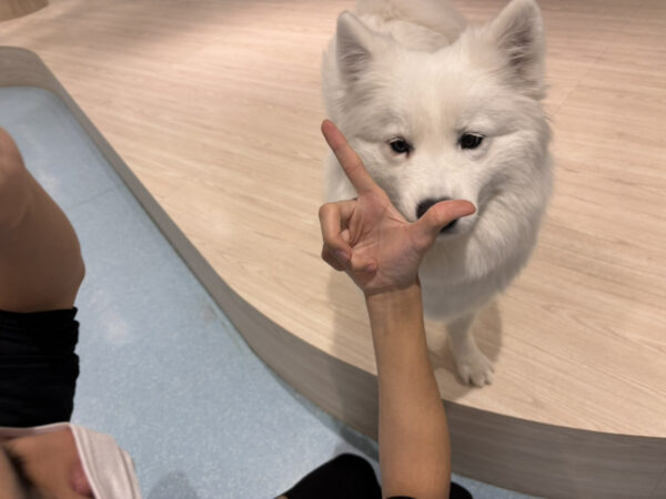 おすわり、タッチ、おて、あごが完璧!「おやつのためなら頑張っちゃいます!」と言わんばかりに、全力の「あご」を見せてくれました。