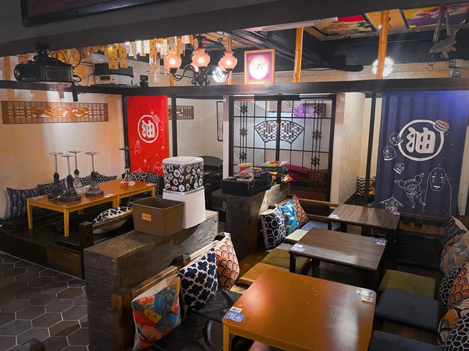 ところどころに日本画や和柄を用いた店内は、独特な雰囲気が魅力!チャージ代とは別に2,000円を支払うと、2名から個室も利用できます。