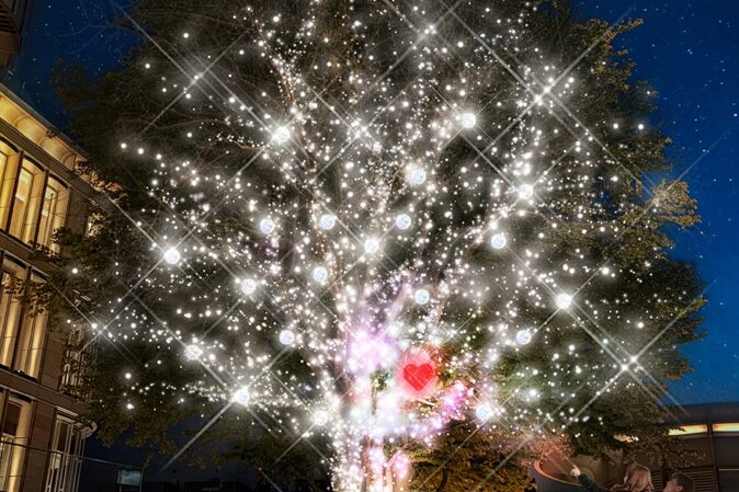 ・光とシャボン玉の特別演出が楽しめる高さ約15mのツリー